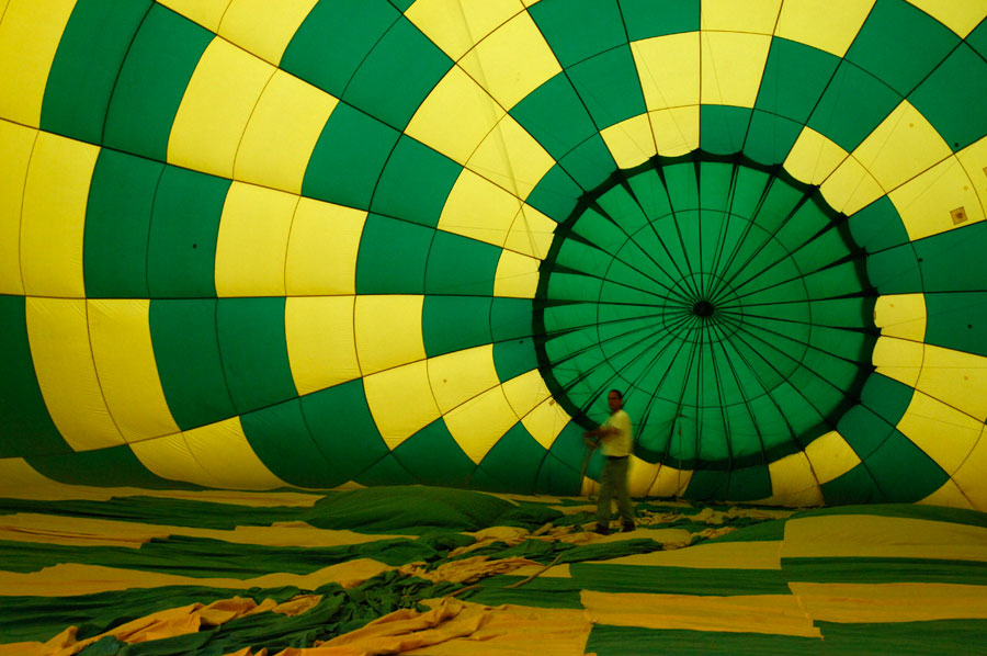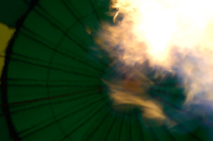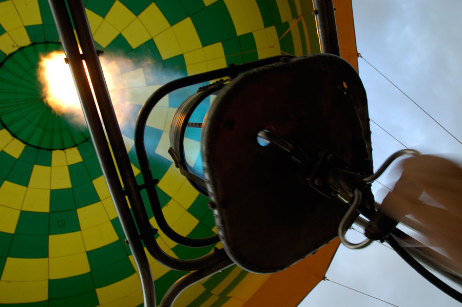 Once the balloon had sufficient shape, hot air was used to develop lift. (d)