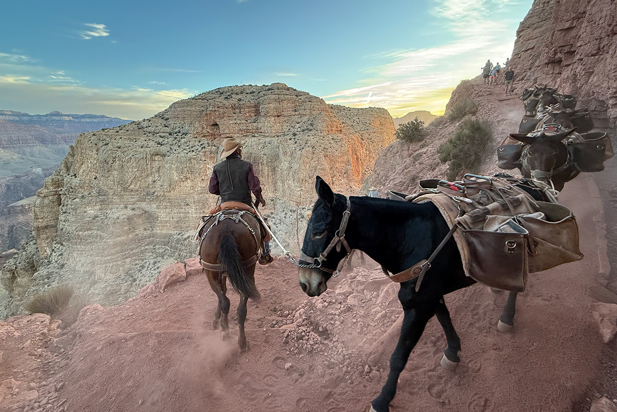 Mule train taking supplies to Phantom Ranch