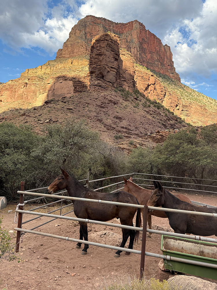 Mules at rest, Cottonwood Campground, at bottom of canyon