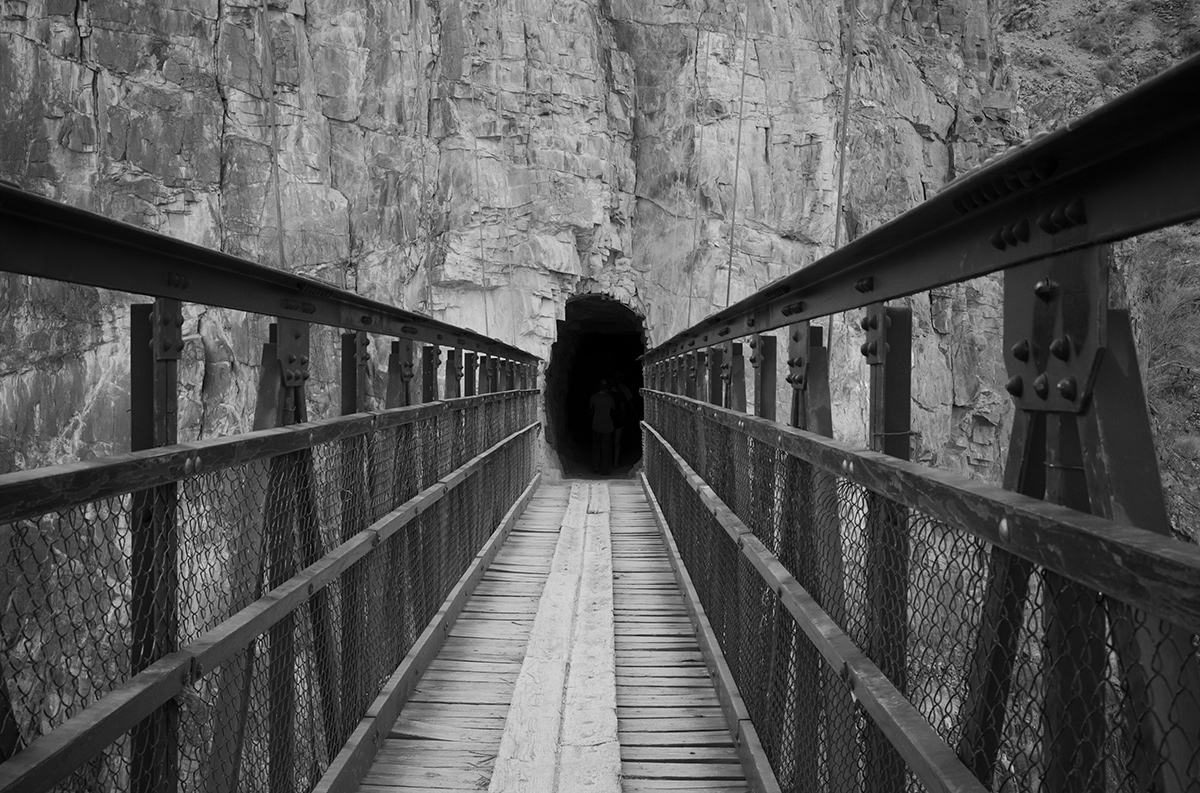Black bridge enters into a tunnel that begins the South Kaibab trail