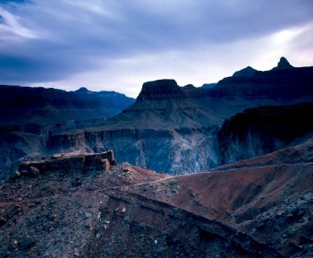 We descend rapidly from our starting point at 7,260 feet above sea level, enjoying the dramatic views from the South Kaibab Trail. After two hours, the Colorado River can be heard rushing below. After almost three hours, we reach 2,400 feet above sea level and enter a tunnel that emerges onto the Black Bridge. Standing on the bridge is truly fantastic, as you watch the Colorado River race below you. The air is still cool, the canyon walls are beginning to light up as the sun climbs, and no other sound can be heard but the river below.