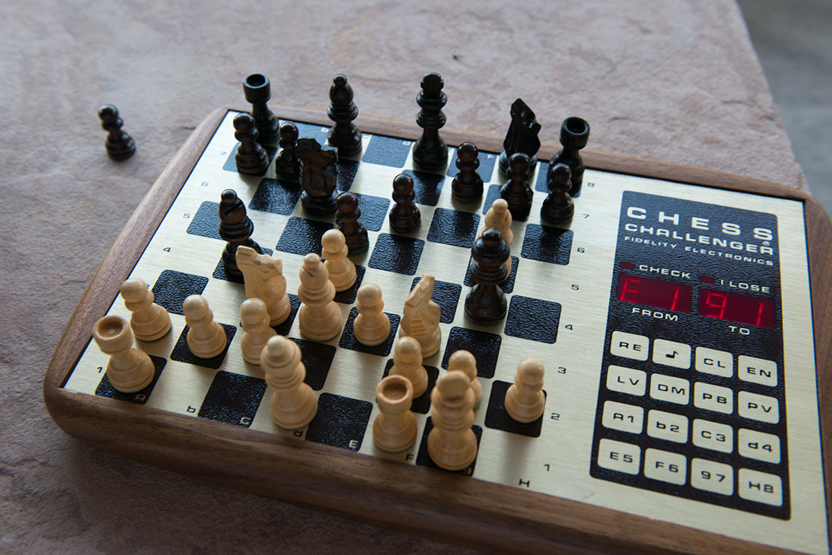 The Fidelity player, sold for around $275 in 1978, sporting a Z80 8 bit processor, 4KB of ROM, and 0.5KB of RAM.