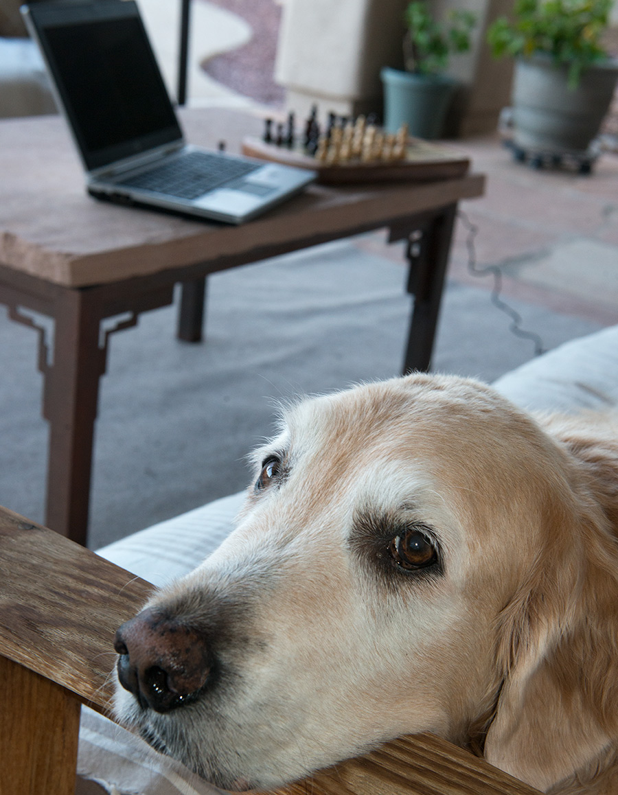 Sparky, my faithful assistant, relaxing nearby, mildly curious.