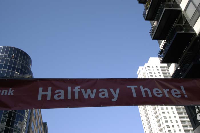 last, mile 13.1, half way there! I have been running for about