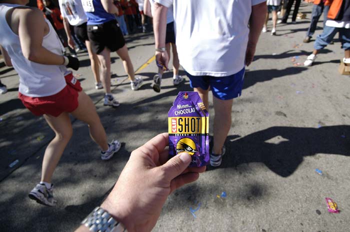 Mmmmm, my chocolate energy gel. Doesn't chocolate sound great after running 20 miles? (d)