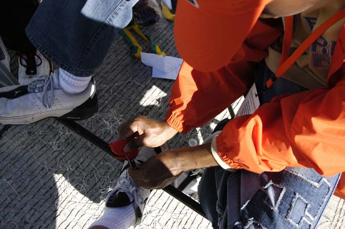 2003 Chicago Marathon - Mile by Mile Page III of III I wanted to visually capture as best as I could "what it's like" to run a large marathon. The 2003 Chicago Marathon, with over 40,000 participants, ranks the highest in number of participants of any marathon in the World. Because nothing but the best would suffice to you, the viewer, I carried a Nikon digital SLR with a wide angle 12-24mm lens. I shot over 250 images, sometimes while running, sometimes while pausing on the side. Below, in sequence is a photographic journal of the Chicago Marathon, which we can comfortably enjoy without having to run 26.2 miles! (s = 35mm, d = Digital, m=6x7 Medium Format, l= 4x5 Large Format)