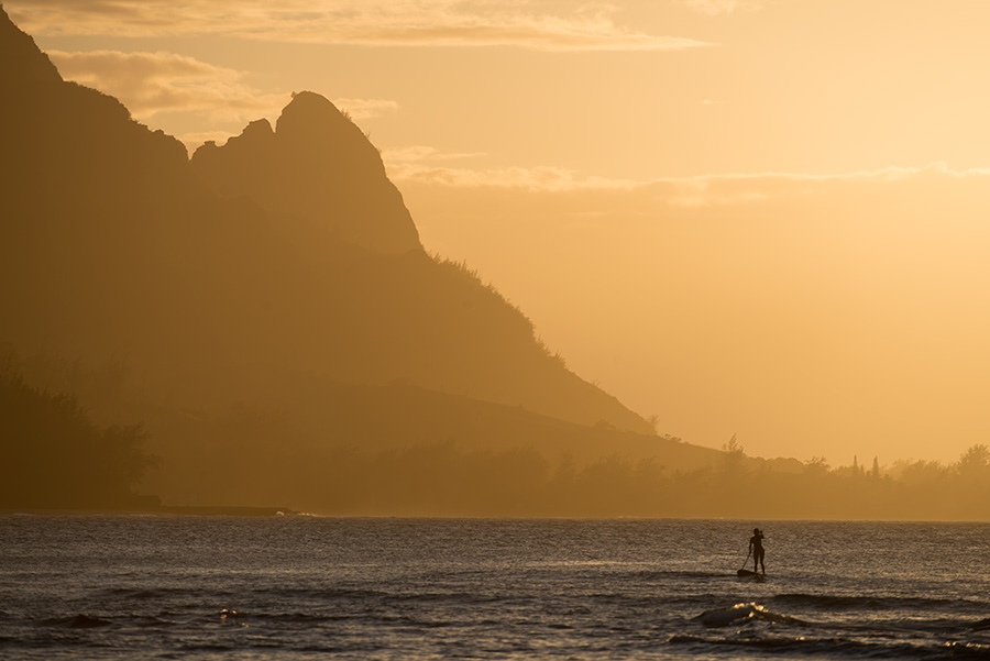 A paddler enjoying a golden sunset, yet another great day, Kauai