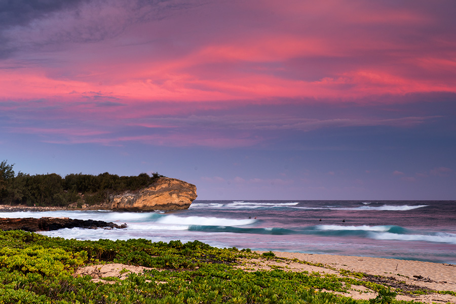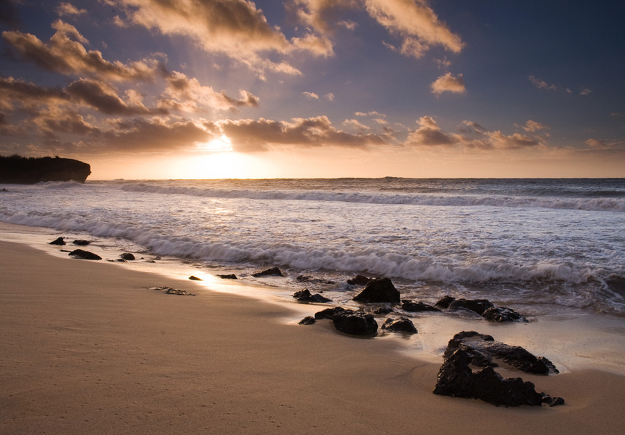 Sunset in Poipu. I used a graduated density filter to prevent the foreground from becoming too dark