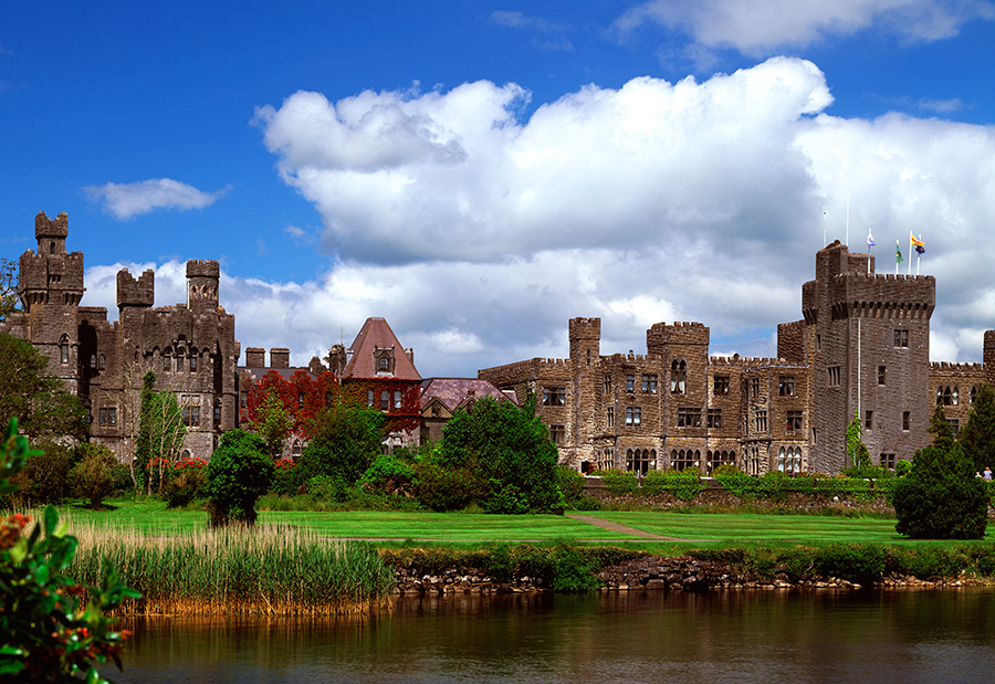 Ashford Castle, begun around 1200 A.D. At one point owned by the Guinness family. Today, a hotel. (l)