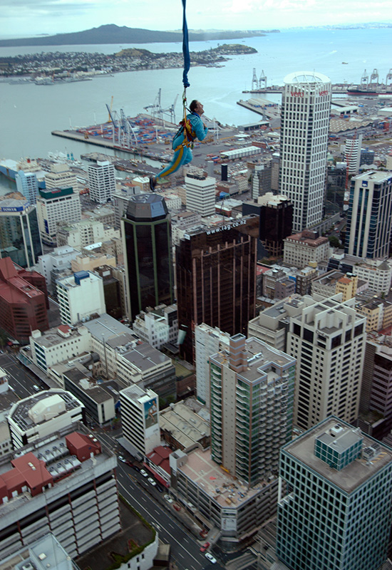 in Auckland's tower, I photographed a bungee jumper bravely awaiting