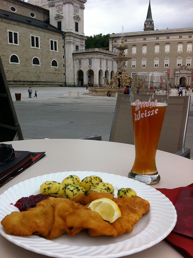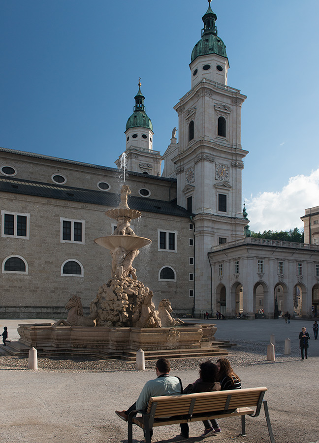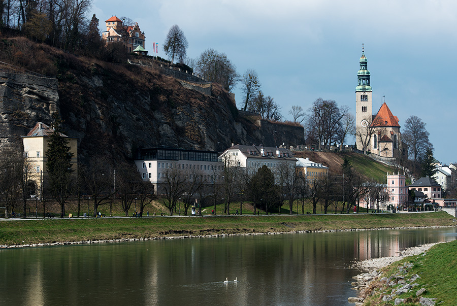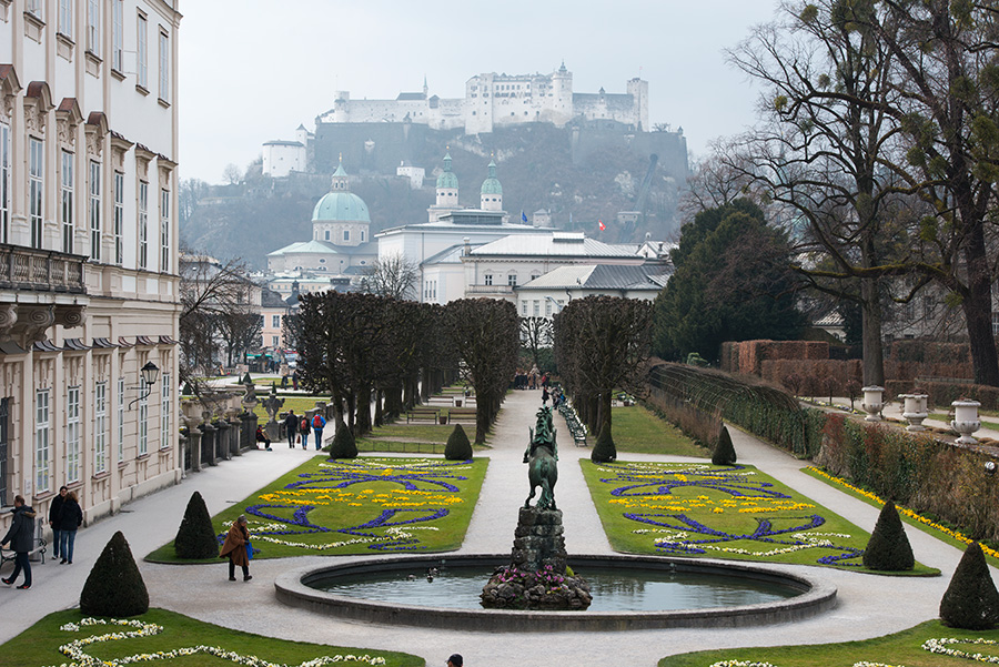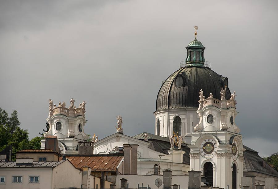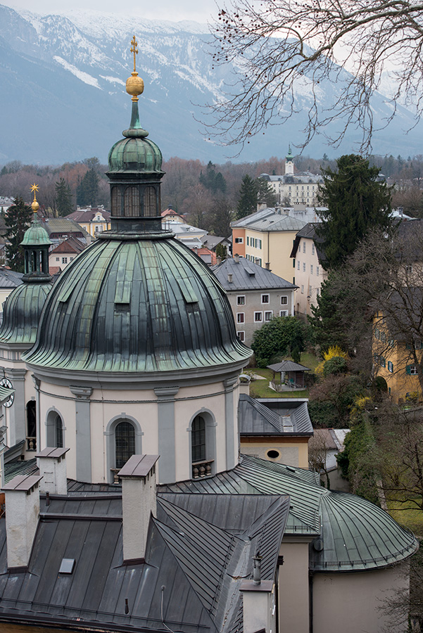 The View of Salzburg, with the Hohensalzburg Fortress above (begun in 1077 AD, expanded around 1500 AD).