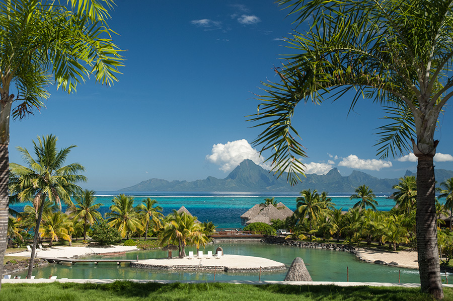 Bora Bora Intercontinental, bottom of image, seen from the airplane.