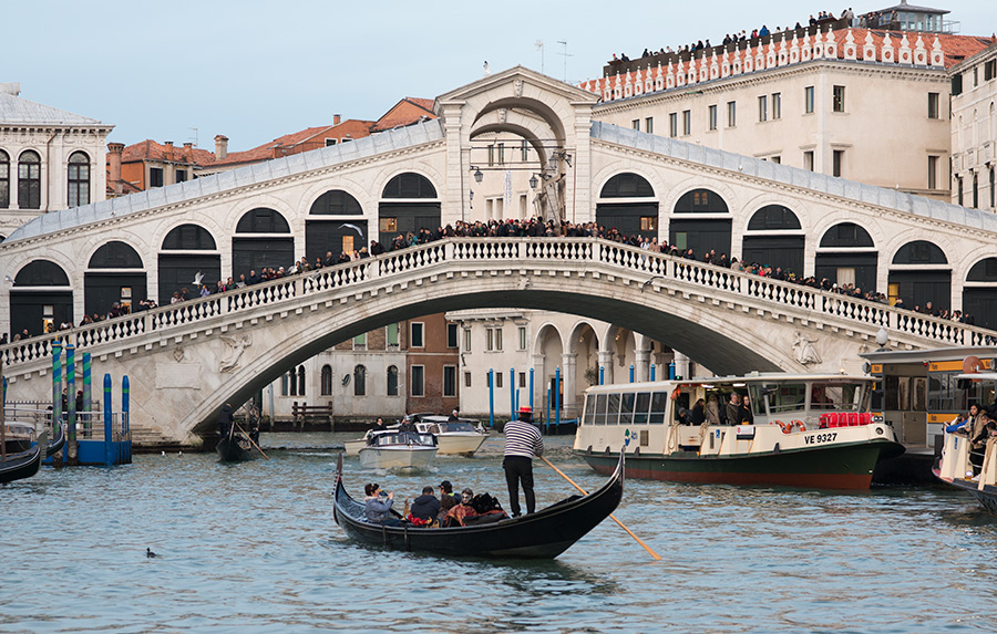 The Rialto Bridge, one of four along the Grand Canal of Venice, although I read the city itself has over 400 bridges spanning the smaller canals