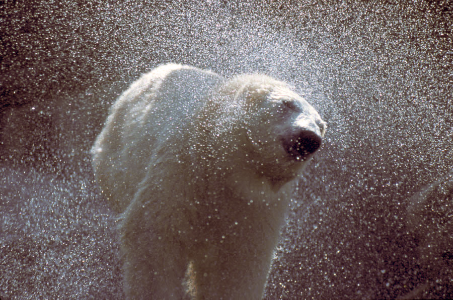 Polar Bear drying out! Yes, he is above water. I used a fast shutter speed to crystalize the flying droplets of water (s)