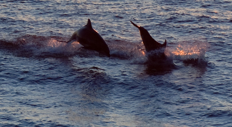 Dolphins jumping at sunset, Pacific Ocean near Encinitas, California (d)